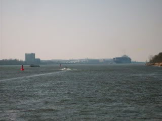 We dropped our bags in the locker station and made our way to the Hafen (dock), to take a quick boat trip along the famous river Elbe. Which is the direct connection to the ocean. It is also how the big ocean liners get into the Hamburg docks to drop off their goods from all around the world. I stared at them longingly yesterday in Lübeck, wondering where they have been, what they’ve seen. The big ships really have a dark presence about them, hovering in a thick mist as they glide into the harbor following smaller ships, like airplanes being guided in from the runway. A lone siren blared in the distance and the seagulls screaming for food.