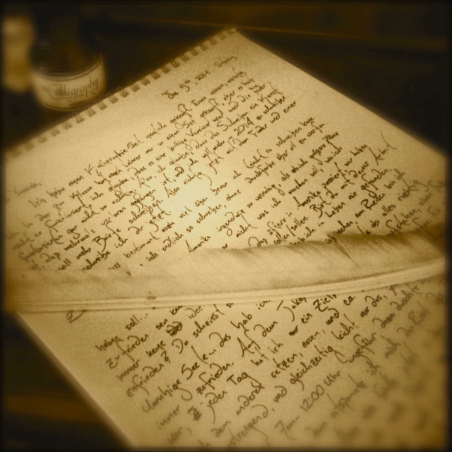 I stripped back the technology even further in 2014 and upgraded my calligraphy set this year. I bought a new set of pen nibs and a feather pen. I set out in 2014 armed with a feather pen. I found that those old pen nibs hold a ready amount free-flowing ink that kept my hand from pressing as hard and allowed me to freely glide across the page without straining my hands as modern pens seem to do. Despite the initial mess I had by accidentally turning the tip of the pen while writing and splattering ink all over the page, and successfully covering my right hand in black ink, my first letter was a success. I even had enough ink on my thumb to put a fingerprint on the end of the letter to show for my struggles on that first letter. That first calligraphy, hand written, wax sealed letter is going to Afghanistan, to a solider at war who I adopted through adoptaussoldier.org . I tell that man at least a story a week per hand-written letter because being far from home, a hand-written, human touched letter provides a small piece of home and comfort, it shows that someone cares. I could write an email, he of course can write back much more easily that way, but the website mentions that handwritten letters are like a “hug” from home, it’s a tangible object that was sent just for you, by someone who cares. He doesn’t write me back and I don’t know anything about him except that he is a man fighting for what he believes in. But as long as he is getting the letters, I’ll keep on writing.
