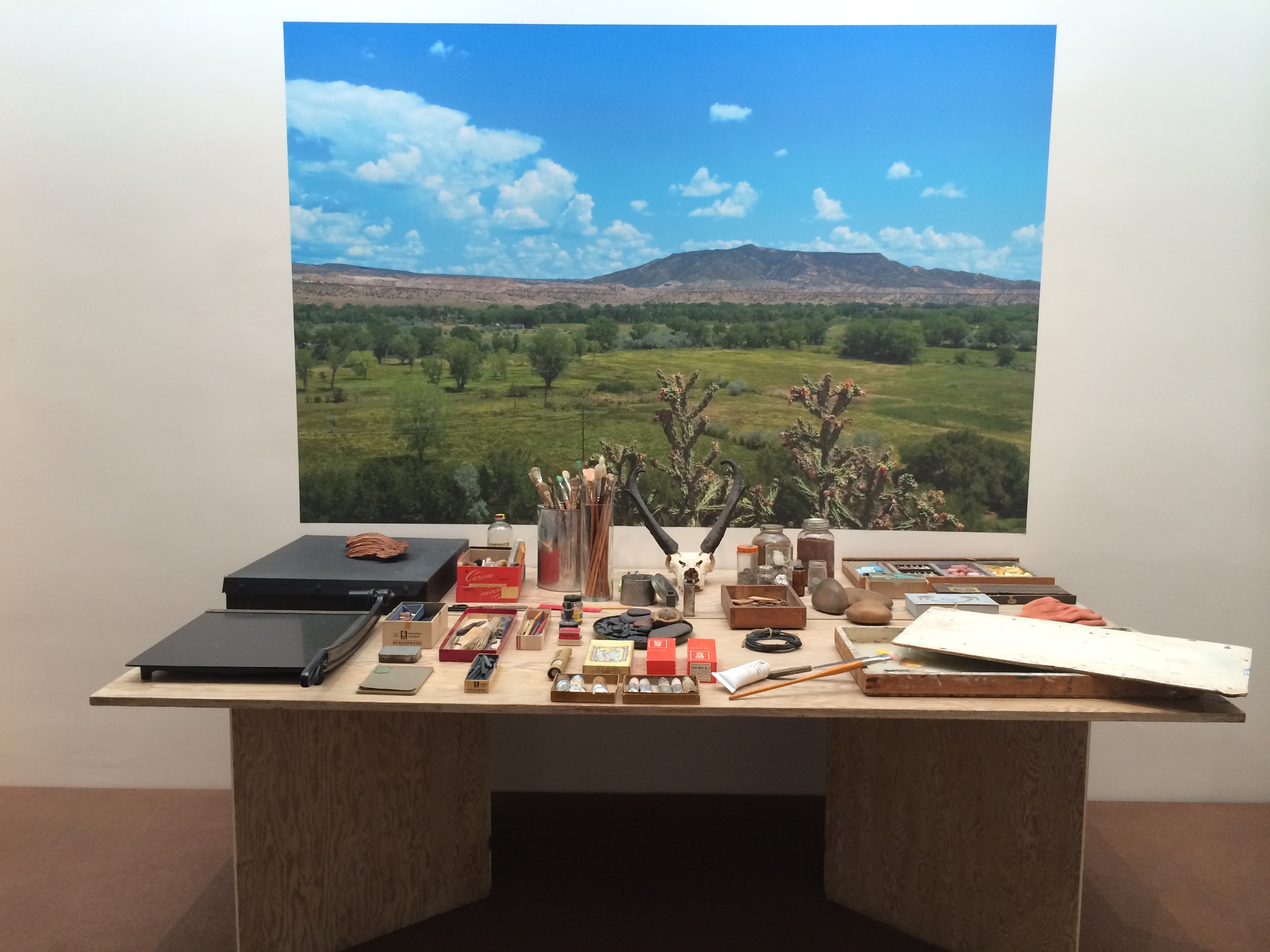 Deborah pointed out O’Keeffe’s love of the vortex in her art, and her love/hatred for the color green. She explained that her flower paintings are the need to give a close up shot of something, much like photography is able to do. There was a bookshelf full of her cookbooks, because apparently she was a bit of a health nut. A woman after my own heart. She was very mindful of what she ate. Regularly covered in black, kymono style clothing, she didn’t allow people to photograph her as she worked; that was her space and her time. She was a private person who enjoyed people on her time. And so we were told, if she liked you, she’d give you a rock.