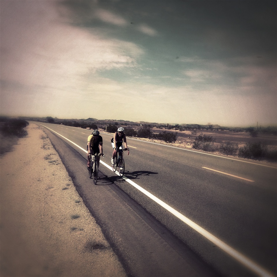 I swung my leg back over that metal horse and pushed on. “Drink more water!” They kept telling me. I was practically nursing my camelback as I rode. “Throw some water on her!” Stephen would tell Brent and Angela, who followed us along the stretch of road. The ice water warmed and dried up as it made its way down my back. We had been riding at least four hours. I didn’t know what I needed anymore. I was probably delusional; it was at least 97 degrees. The road began its slow ascent up towards the last steep hill before the Border Patrol check point. “I dunno if I’m gonna make it ….”