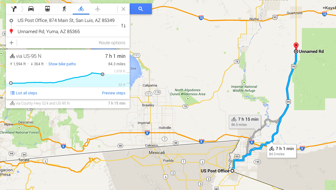 On the other side of the hill I coasted into the Border Patrol checkpoint station, met by two smiling agents who wished me a safe journey, and surely thought I was insane. I was alone by this point, the guys had moved on ahead. “Is this our stopping point?” I asked as I cruised up to King Rd. where Steeve and Stephen were resting.