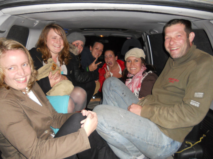 Eventually we saw a little van bopping down the road, slowing as it neared us. Trevor was happy to meet us, and helped us pile into his little van.