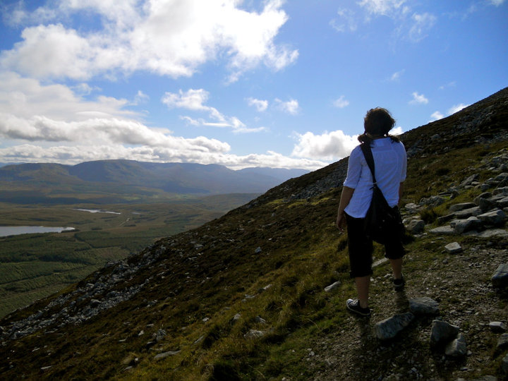 With thumbs out we were on our way towards Westport and the famous Croagh Patrick mountain. The hike and the historical mountain had always intrigued Rob. He wasn’t a bit tired setting out along the roads that morning. Our last hitch on the two hour, 108km (67 mile) drive from Gort to Westport was in a brand new BMW 5 series. We were lucky, the driver, John, lived near Croagh Patrick and hiked it often. He dropped us off right at the entrance of the mountain in the early afternoon, he wished us luck.
