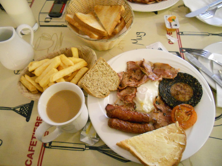 We tried not to accept, but he insisted and we thanked him graciously, in fact still quite hungry. At Ring for Coffee I ordered the full, proper Irish breakfast feast, as did Rob. The meal came complete with two sausage links, fresh Irish bacon strips, eggs, a buttered slice of bread, Irish black pudding and soda bread. Our servers were wonderful and friendly.