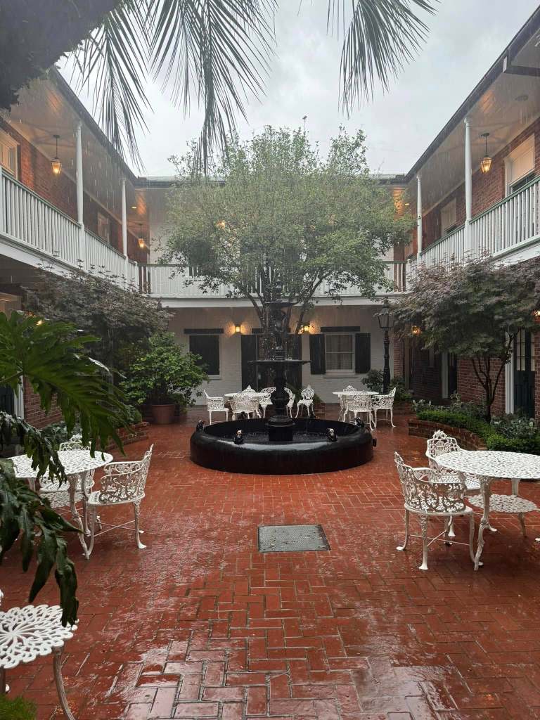 During my stay I employed the services of the Hotel Provincial, a charming and historic location dating back to 1725. Of course as with most of the hotel in the French Quarter, there are notes of hauntings, perhaps especially at this one due to its history as a military hospital. It had a pool, quaint nooks and courtyards (as seen below) and boasted a free Sazerac (the official cocktail of NOLA) to guests at their Ice House bar. My first evening I lay in bed, peering up at the large ceilings, and antique desk and armchair , and imagined what sort of hauntings might happen to me in that grand bed, but alas I slept quite soundly. The staff were wonderfully friendly and I found it a perfect starting point for my week there, even if I did have to take a Lyft to the conference center each day. I wanted to be in the center of the historic charm of the city.